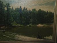 Картина с янтарем, панно, янтарь, замок, деревья, река, лодка с парусом, птицы, небо, 32,8 x 23,6 см