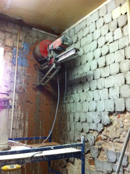 Бурение алмазное бетона, кирпича. Аккуратные отверстия под водопровод, вентиляцию, газ. Автоматическая беспыльная прорезка проемов. Сверление под углом, демонтаж.