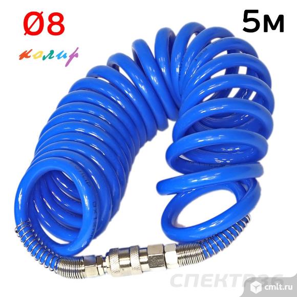 Шланг спиральный 8х12мм Колир 5м PU синий эластичный