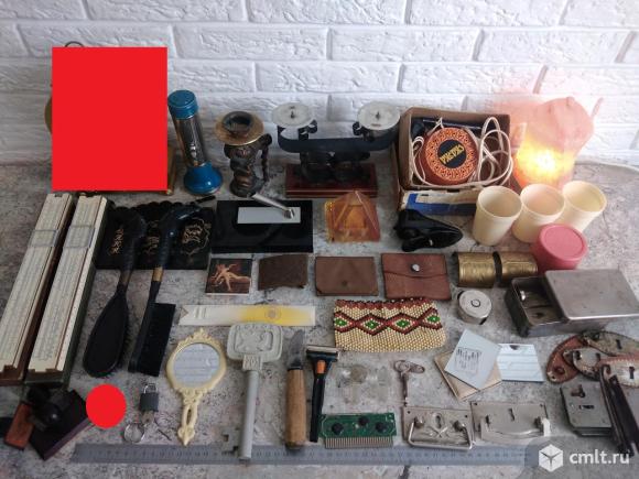 1) Часы - Проданы !!! 2) Фонарик круглый СССР ц.1р.37к. - 250р. 3) Подсвечник «Лев». Силумин. Винтаж высота около 13,5 см. - 750р. 4) Винтажный подсвечник СССР на 2 свечи, металл -450р. 5) Электроприбор для выжигания Сказка. В родной коробке. Рабочий! Жало не родное. - 750р. 6) Соляная лампа 1,5 кг. - 1200р. 7) Набор походный Автотурист. 3 шт. СССР. Стаканы. Для холодных пищевых продуктов - 200р. 8) Линейка логарифмическая (1966г.) - 250р. 9) Линейка логарифмическая СССР. Ленинград 1956год. - 700р. 10) Сувенирный набор СССР Тройка для прихожей Щетка для обуви, щетка для одежды. Крепление, крючки для щеток прокручиваются. По середине держится хорошо. - 400р. 11) Подставка для ручки СССР. ЛПТО Союз. Винтаж - 350р. 12) Пирамида-подставка под 2 ручки. - 300р. 13) Магнит Ангел (6х6см.) - 350р. 14) Бляха/Пряжка. Авто. Времён СССР. Латунь. - 400р. 15) Кошелек для мелочи СССР.- 100р. 16) Кошелёк СССР. Винтаж. - 200р. 17) Кошелёк с бисером из СССР - 150р. 18) Светильник в виде кеда. СССР. - 200р. 19) 2шт. Детали для кубка СССР. латунь - 150р. 20) Винтаж. Металлический метр ЛОСПМ Ленинград - 200р. 21) Стерилизатор. Клеймо 059. Многоразовый шприц, иглы - 500р. 22) 3 шт. Печати одним лотом - 600р. 23) Маленькая наковальня - ПРОДАНА !!! 24) Маленький навесной замок - 150р. 25) Филателия Ленинград СССР. Линейка, лупа и пинцет для марок в чехле - 200р. 26) Зеркало времён СССР. корпус пластик. - 150р. 27) Штопор сувенирный Псков 903 - 250р. 28) Нож. Есть клейма 1882-1885г. - 400р. 29) Станок для бритья СССР с регулировкой наклона лезвия - 400р. 30) 2 шт. Пробки от флаконов, стекло - 250р. 31) Картридж плата. Не проверялся. Работоспособность не известна. - 200р. 32) Ключ зажигания для мотоцикла Ява PAL - 250р. 33) 2шт. Одним лотом. Зеркальце карманное дорожное в чехле СССР. Есть скольчики - 200р. 34) Мебельная ручка времён СССР. Клеймо. Винтаж - 300р. 35) Мебельная ручка времён СССР. Клеймо. Винтаж - 250р. 36) Всё одним лотом. Мебельные ручки. Врезные замки времён СССР. Клейма - 1000р. Внимательно см. фото Состояние и размеры на фото Доп.фото по запросу. Доставка почта России Просьба уточнять о наличии При отправке нескольких лотов почтой отправляю одной отправкой - экономия на доставке