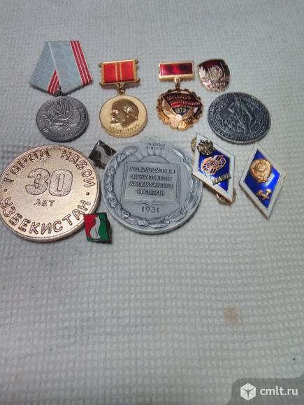 Ложка чайная из рубля Екатерины I, 15 см (реплика, 1726 г., есть ложки из рублей и других императриц) и значки с ценой по-договоренности.