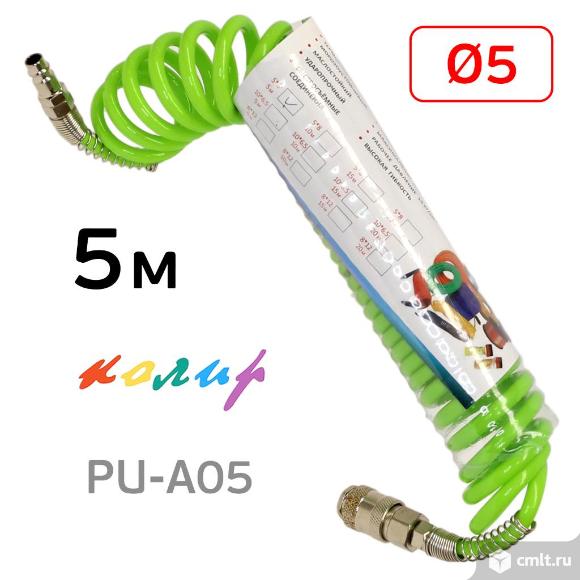 Шланг спиральный 5х8мм Колир 5м зеленый PU с быстросъемами