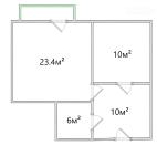 1-комнатная квартира 46,53 кв.м