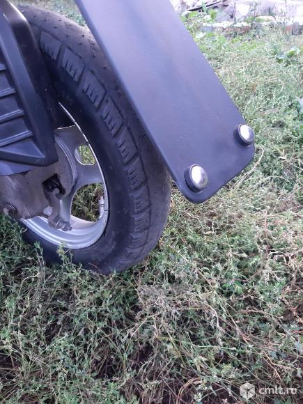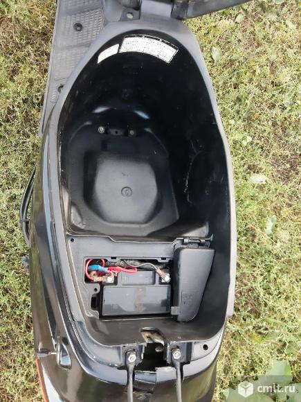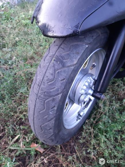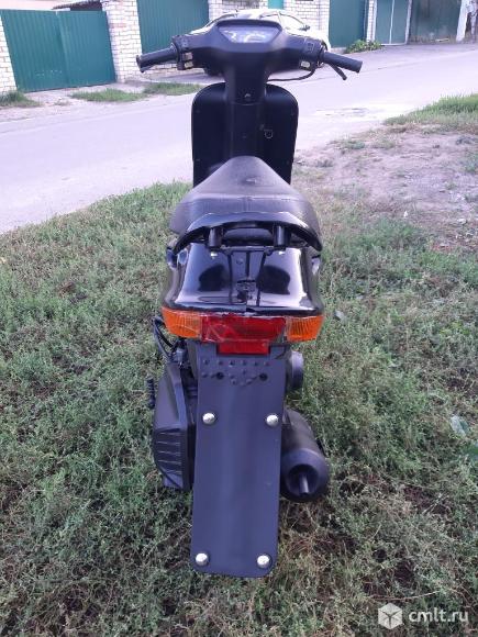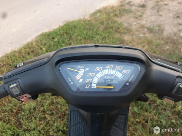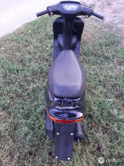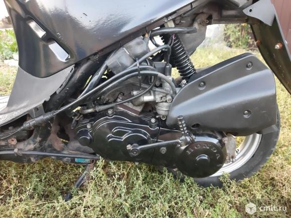 Скутер на полном ходу!Сел и поехал.Не смотря на компактные размеры можно ездить с пассажиром,сиденье и мощность мотора позволяют.Двигатель 2-х тактный с раздельной системой смазки,масло льётся в отдельный маслобак.Мощность 6.4 л.с.Стрелку спидометра кладёт. Колеса 10 дюймов,тормоза барабанного типа,достаточно хорошие.По электрика всё работает,свет яркий.Заводится как с кик-стартера, так и с электро стартера.Большой багажный отсек под сиденьем.Блокировка руля работает.Стоит новый бензонасос и новые задние колодки.По внешему виду есть недостатки,видно на последних фотографиях,не хватает двух пластиковых боковинок (лыж),заднее крыло самодельное.