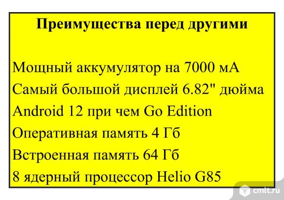 Причина продажи-хочу не смартфон,а планшет с двойным экраном.Обмен на планшет с двойным экраном рассматриваю К объявлению прикреплено обзорное видео,взятое из интернет для общего обозрения модели(советую посмотреть) Это не ZTE,не Itel,не Dexp,не BQ,не INOI,не No brand goods Rino и многие многие другие с маленькими экранами,маленькими оперативной и внутренней памятью и слабыми аккумуляторами!!! Пожалуйста сравнивайте смартфоны только с одинаковыми хар-ми и особенно с такой же ёмкостью аккумулятора! Если сделать сброс на заводские установки-будет как новый Не вскрывался.Стоит защитное стекло(ещё одно новое запасное в подарок).Тачскрин целый Преимущества: -самый большой выпускаемый экран HD диагональю 6.82" дюйм с матрицей IPS,которая не искажает изображение под любым углом(175х75 мм) -не допотопная,а современная операционная система Android 12 при чем Go Edition(подробнее смотри в интернет) -8 ядерный процессор Helio G85 -оперативная память 4 Гб(ничего не виснет) -встроенная память-64 Гб(поместятся все Ваши приложения и их обновления которые устанавливаются только на внутреннюю память) -самый большой и мощный современный Li-Ion аккумулятор на 7000 мА?ч-не будете как большинство «сидеть на шнурке» -сканер отпечатка пальца -очень удобно расположена сетевая кнопка-она утоплена и не мешает при пользовании-произвольно не включишь и не выключешь -мощный блок питания на 18 Вт Max в подарок Любые проверки на месте.Звоните расскажу покажу Появились в продаже смартфоны этой же фирмы,но с меньшим экраном и аккумулятором на 5000 мАч Поддержка 4G Слот для карт памяти объемом до 256 Гб Тип сенсорного экрана мультитач,емкостной Тип разъема для зарядки usb type-c Автоматический поворот экрана Фото вспышка тыльная,светодиодная Габаритные размеры: -высота 17.09 см -ширина 7.78 см -толщина 0.96 см Вес смартфона 230 грамм Электронный чек Остальные параметры смотри в интернете Не забывайте что если покупаете на маркетплейсах…товар не возвратный!Деньги не вернут Посмотреть можно в любое время по предварительному звонку в районе площади Ленина,ресторана Токио. 10.04.2026 17:52