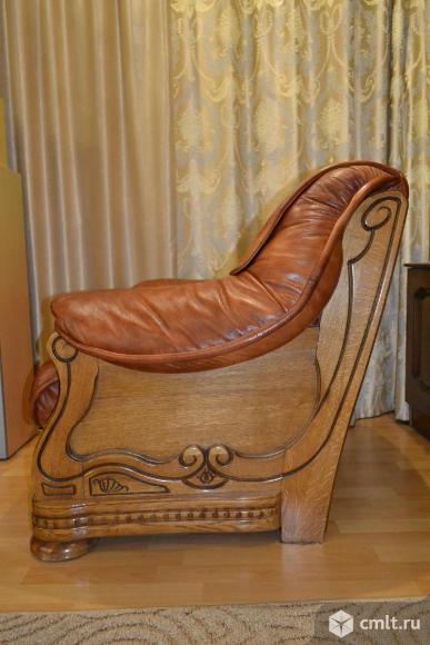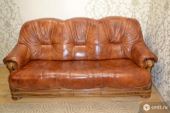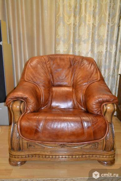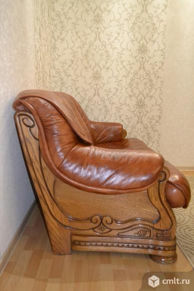 Kожaный дивaн и 2 кpеслa,натуральная кoжа,кaркас дуб.