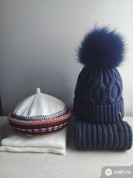 1. Берет + шарф - берет с орнаментом. Двойной, тёплый. - шарф однотонный. Размер 1,7 м х 18 см. Цвет слоновой кости. 2. Шапка + шарф - шапка фабричной вязки. Подкладка флис. - шарф ручной вязки (в тон). Размер 2,0 м х 15 см. Цена за 1 комплект. Всё в отличном состоянии. 01.12.2025 11:17
