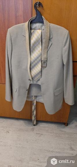 Продается костюм светлый в отличном состоянии, почти новый. На фотографии этикетка с костюма. Размеры на этикетке европейские. Наш размер - 48. Рост 176-178. Можно забрать галстук к нему и ремень. Тоже фактически новые.
