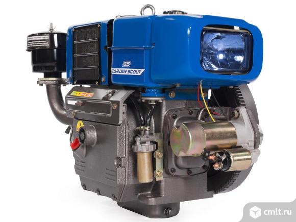 Двигатель 4-х тактный 1-цилиндровый горизонтального расположения мощностью 15 л.с с водяным охлаждением.