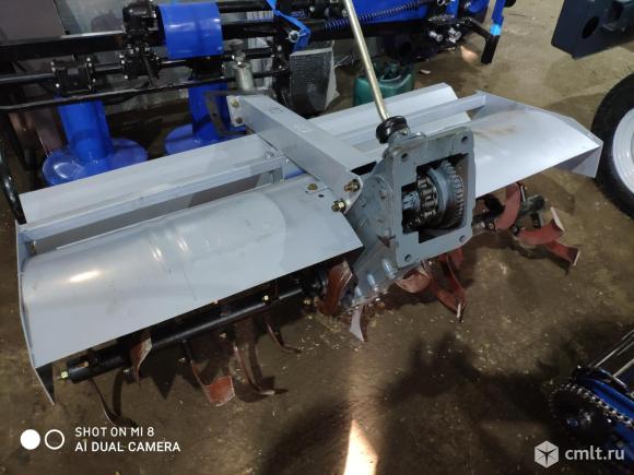 Для работы почвофрезы нужен трактор мощностью от 20 л. с. с валом отбора мощности 540 об/мин и трёхточечным задним креплением. В комплект входит карданный вал с подключением 6х6 шлицов. Технические характеристики: Ширина культивации — 1,4 м Количество ножей — 32 шт (тип IТ225) Производительность: 0,28-0,7 га/час Масса почвофрезы — 224 кг Глубина обработки — 10-16 см Рабочая скорость 2-7 км/ч Габариты: ширина: 850 мм, длина 1490 мм, высота 990 мм Основное назначение почвофрезы - это крошение и перемешивание слоёв почвы, в том числе с минеральными удобрениями, уничтожение сорняков, измельчение растительных остатков, заделка удобрений, срезание кочек и выравнивание поверхности поля. Фрезеровать целесообразно тяжёлые почвы, где требуется интенсивное измельчение почвенного монолита. На лёгких почвах фрезы применять не рекомендуется во избежании распыления земли. Основные составные части почвофрезы (фото №3): 1. карданный вал, служащий для передачи вращающего момента от вала отбора мощности трактора к рабочим органам фрезы; 2. защитный кожух, который защищает оператора от летящих кусков почвы и пыли; 3. редуктор фрезы, понижающий передаваемый крутящий момент; 4. рабочий вал фрезы, на котором закреплены ножи. Принцип работы: при включении ВОМа трактора крутящий момент передается на карданный вал почвофрезы. А за счет конической и зубчатой передач вращение передается на рабочий вал фрезы, где закреплены ножи, которые и измельчают почву.