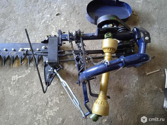 Технические характеристики: Рабочая ширина: 1800 мм Кол-во ножей в сегменте: полотно ножей Высота среза: 40-80 мм Требуемая мощность трактора: от 18 до 30 л.с. Рабочая скорость: 6-10 км/час Масса: 130 кг Рама с приводом предназначена для присоединения косилки к навесному устройству трактора и преобразования вращательного движения вала приёма мощности в возвратно-поступательное движение шатуна. На сварной раме смонтирован кронштейн ведущего шкива. Шкив установлен на валу приема мощности посредством шпонки. Вращательное движение от ведущего шкива через клиновидные ремни передается ведомым шкивом на ведомый вал. На передней части вала установлен эксцентрик, предназначенный для преобразования вращательного движения вала в возвратно-поступательное движение шатуна и уравновешивания, возникающих от массы шатуна и ножа инерционных сил. Натяжение ременной передачи осуществляется смещением втулки вала приема мощности в прорезях кронштейна. Ременная передача закрыта кожухом закреплённым на раме болтами. Снизу механизм эксцентрика и ведомый шкив защищены кожухом, крепящемся к раме. Режущий аппарат состоит изпальцевого бруса, внутреннего и наружного башмаков, ножа, пальцев, пластин трения, прижимов. Во время работы косилки режущий аппарат скользит по земле на внутреннем и наружном башмаках, под которыми расположены подошвы, служащие для установки высоты среза. На внутреннем башмаке установлены передняя направляющая и задняя направляющая головки ножа, а также отводной пруток. К наружному башмаку шарнирно крепится полевая доска, предназначенная для образования на прокосе очищенной от травы полосы для последующего прохода внутреннего башмака режущего аппарат. К пальцевому брусу болтами с потайными головками закреплены пальцы с противорежущими пластинами. Нож состоит из ножевой полосы с прикрепленными к ней сегментами и шаровой головки ножа, служащей для присоединения к шатуну. Нож перемещается в пазах пальцев, опираясь задней частью сегментов и спинкой ножа (ножевой пластины) на пластины трения, а передней частью на противорежущие пластины. Для плотного прилегания сегментов ножа к противорежущим пластинам пальцев предназначены прижимы. При переездах режущий аппарат фиксируется в поднятом положении транспортным прутом. Механизм подъёма режущего аппарата состоит из системы рычагов и цепей. Необходимо отрегулировать цепь рабочего положения так, чтобы добиться оптимального угла между шатуном и режущим аппаратом. Угол не должен превышать 10 градусов, иначе возникнет вертикальное биение в шарнирном узле, что может привести к поломке шатуна или режущего аппарата. Необходимо отрегулировать длину цепи таким образом, чтобы при подъёме в транспортное положение косилка не касалась земли, а в рабочем положении цепь была расслаблена.