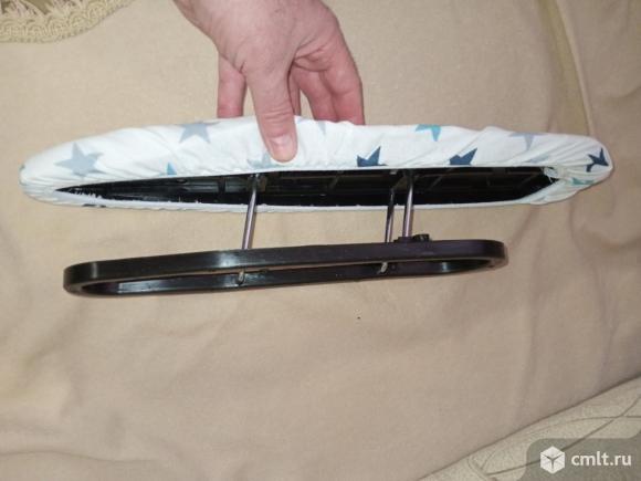 Пользуюсь.Пришлю фото на день обращения Доска со всеми наворотами которые существуют у гладильных досок(в городе таких нет): -рабочая поверхность-перфорированный железный моноблок -большая площадь для глажки 120х38 см(узкие и короткие очень не удобные) -рукав для гладильной доски(для глажки рукавов рубашек и прочего) -подставки для утюга для работы с обеих сторон(для левши и для правши) -полка для белья(очень удобно) -встроенная розетка-удлинитель 2 м=гораздо удобнее чем переноска -держатель провода-очень удобная вещь-провод не мешает во время глажки(самостоятельная установка) -универсальный съёмный светлый яркий термо чехол который очень быстро сохнет после стирки(еще не стирали) -складная конструкция доски из легкого металла-можно поместить в шкаф или другое укромное место -регулируется по высоте,что позволяет адаптировать ее под рост Максимальная высота 90 см Минимальная высота 70 см Габариты в сложенном виде 1650x410x150 мм Вес 6.9 кг Посмотреть можно в любое время в районе пл.Ленина/ресторана Токио 03.12.2025 12:30