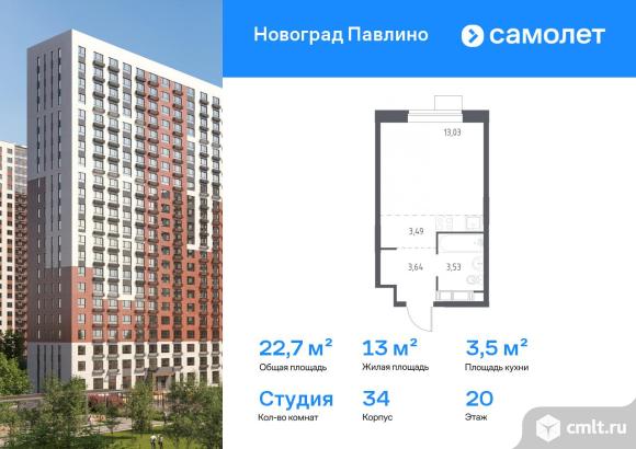 Строим кварталы для жизни с заботой о будущем. Предлагается квартира студия комфорт-класса 22,7 кв.м в корпусе 34 на 20 этаже, в ЖК «Новоград Павлино»