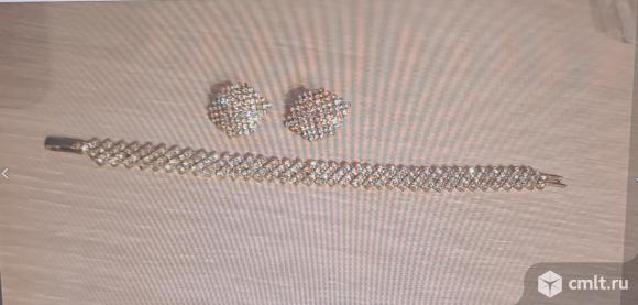 Продаю комплект бижутерии: браслет+серьги, Чехия. Браслет - длина 19 см, застёжка. Серьги- гвоздики. Вечерний вариант, сильно сверкают. В отличном состоянии. Без следов носки.