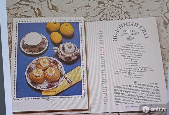 Крым, 9 двухсторонних открыток, полный набор, альбом-раскладушка, 1956, состояние хорошее -300 руб. ; Новороссийск, 16 открыток, 1971, состояние хорошее - 100 руб. ; Мамаев курган, 24 открытки, 2 утеряны, 1979, состояние хорошее - 80 руб. ; Русская кухня, 16 открыток, полный комплект, с рецептами, 1984, состояние хорошее -100 руб. ; Яблочный стол, 18 открыток с рецептами, полный комплект,1988, состояние новых -100 руб. ; Блюда грузинской кухни, 15 открыток, 1 утеряна, 1972, состояние хорошее -80 руб. Блюда Эстонской кухни, 15 открыток, полный комплект, 1973, состояние хорошее -100 руб. ; Рыбные блюда, 15 открыток, полный комплект, 1971, состояние хорошее -100 руб. 23.02.2026 10:08