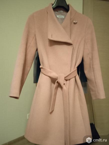 Пальто пыльно розового цвета под пояс стильный воротник отличное состояние
