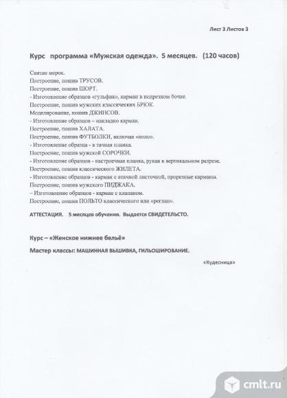 На курсах кройки и шитья «Кудесница» Вы на профессиональном уровне научитесь пошиву всего ассортимента одежды от шорт до пальто на подкладке по программе, рассчитанной на 9 месяцев. Курсы ведёт инженер-технолог швейного производства. Почётный работник образования РФ, педагог дополнительного образования высшей категории по конструированию и моделированию одежды. Дипломант и призер международных, городских и региональных фестивалей и конкурсов модельеров и дизайнеров. Занятия в группе с каждым учащимся проводятся индивидуально и предусматривают практику пошива изделий с конструированием и моделированием по снятым меркам. Методическая литература по пройденному курсу предоставляется в электронном виде. Оплата помесячно 7000 руб. за 24 часа по 3 часа 2 раза или 6 часов 1 раз в неделю (возможны варианты).Занятие на курсах в группе с каждым учащимся проводятся индивидуально, поэтому набор не зависит от комплектования групп, надо только согласовать дни недели и время. Первое занятие мастер-класс «шорты», для тех кто продолжит обучение на курсах - бесплатно. Адрес: Воронеж, 20 лет Октября 119, «Дом Быта», 3 этаж, офис 311. Прайс-лист
