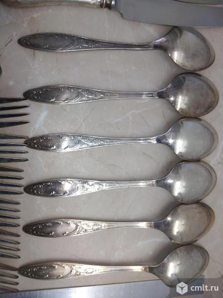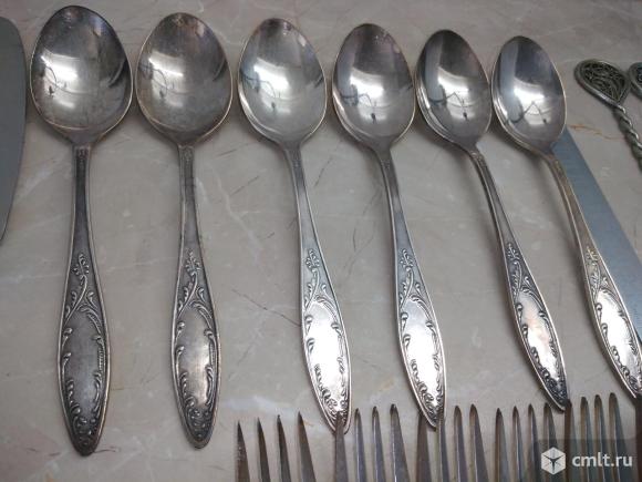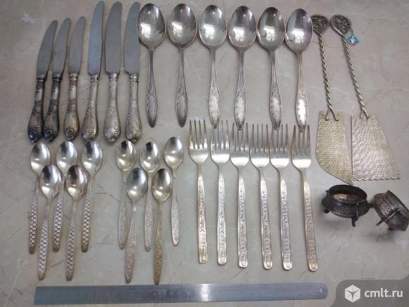 Ножи, ложки, вилки, солонки Мельхиор. МНЦ. Пламя