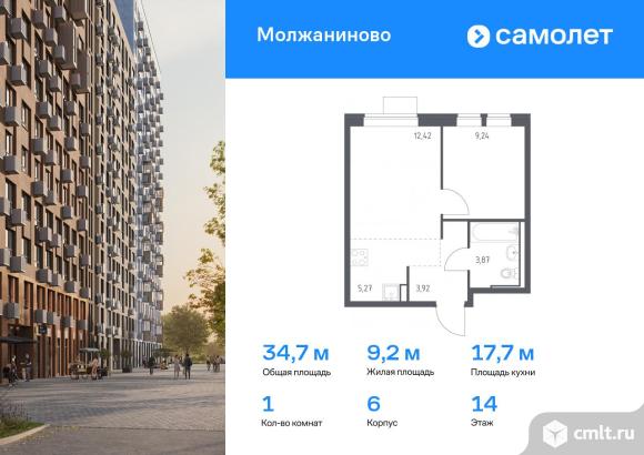 Предлагается 1-комнатная квартира комфорт-класса 34,72 кв.м в корпусе 6 на 14 этаже, в ЖК «Молжаниново»