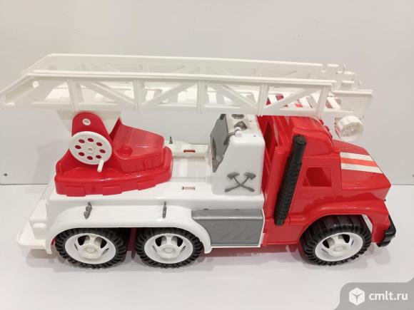 Детский автомобиль "Профи" (Пожарная машина) 4680002090887 Размеры игрушки: 56*20*30 см (ДхШхВ) Бренд:Каролина Материал:пластик Производитель:Россия Машинка оснащена подвижной лестницей, выдвигающейся и крутящейся вокруг своей оси. Имеет открывающийся ящик за кабиной под мелкие предметы. Последнее фото - как выглядит новая. Недочеты: скол на заднем бампере, отсутствует корзина с креплением серым. 02.02.2026 12:26