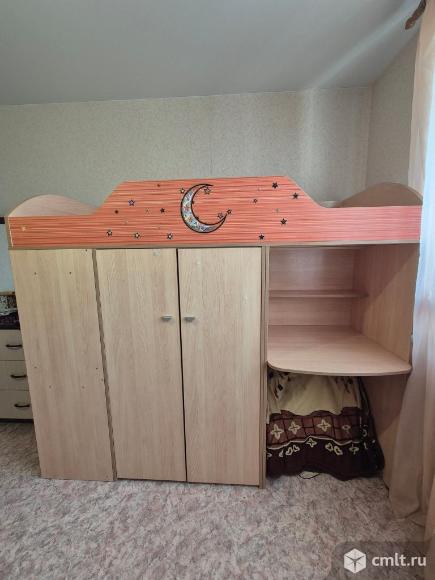 Продается двухэтажная кровать.Имеется вместительный шкаф,для верхней одежды,лестница с небольшим выдвижным ящиком.Так же несколько удобных книжных полок и отдельные полки для одежды.Все нужные части исправны и целы.