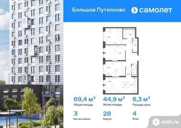 Строим кварталы для жизни с заботой о будущем. Предлагается 3-комнатная квартира комфорт-класса 69,36 кв.м в корпусе 28 на 4 этаже, в ЖК «Большое Путилково»