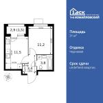 1-комнатная квартира 35,1 кв.м