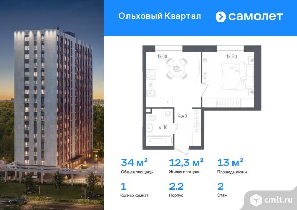 Строим кварталы для жизни с заботой о будущем. Предлагается 1-комнатная квартира комфорт-класса 34 кв.м в корпусе 2.2 на 2 этаже, в ЖК «Ольховый Квартал»