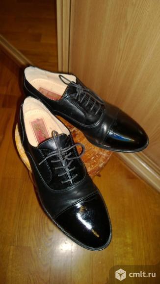 Элегантные вечерние туфли ручной работы немецкой фирмы Apollo. Верх, подкладка, подошва, наборный каблук из высококачественной натуральной кожи. Цвет черный, размер 9G (42-43), на каблуке специальная противоскользящая вставка, нос и задняя часть лакированные. Состояние хорошее, коробка.