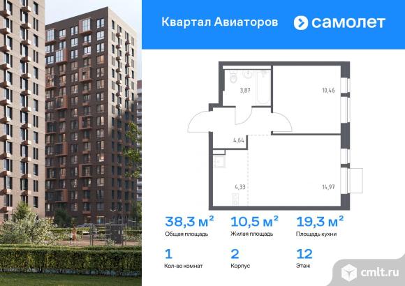 Предлагается 1-комнатная квартира комфорт-класса 38,27 кв.м в корпусе 2 на 12 этаже, в ЖК «Квартал Авиаторов»