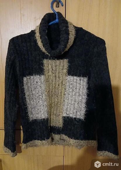 Коричневый вязаный свитер со вставками бежевого цвета, размер 44 (S/M), в хорошем состоянии. Изготовлен из качественного синтетического материала с добавлением шерсти и кашемира для комфорта и тепла. Надет один раз, сохраняет вид после носки. Теплый и уютный элемент гардероба. Длина по спинке - _60_ см, ширина от подмышки до другой - _55_ см.