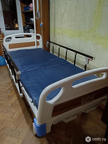 Кровать для ухода за лежачими больными с матрасом. изготовитель "Армед". Оснащена рукояткой для подтягивания и стойкой для капельниц. Поднимаются спинная и ножная секции. Кровать на колёсах, два из них с тормозным механизмом. Приобретена в 2022 году, эксплуатировалась недолго. Есть паспорт с инструкцией по эксплуатации.