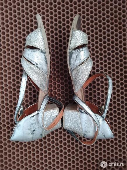 Фирменные бальные туфли серебристого цвета
