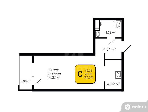 1-комнатная квартира 30,29 кв.м