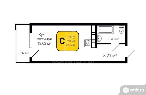 1-комнатная квартира 21,74 кв.м