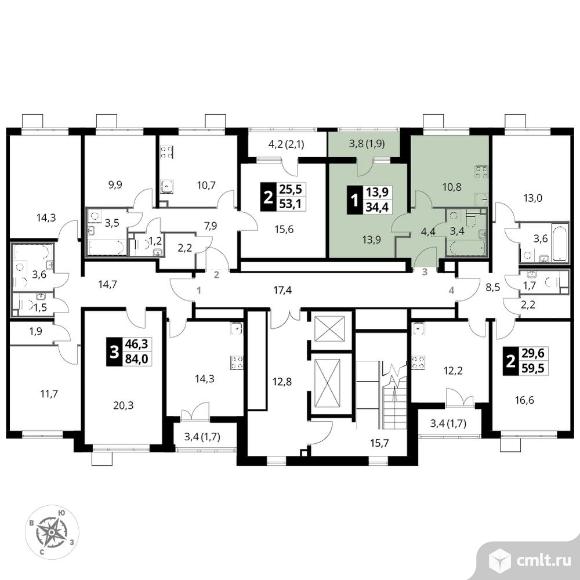 Перейти к актуальным объявлениям рубрики Квартиры. 1-комнатная квартира 34,2 кв.м - ЖК «1-й Лермонтовский»