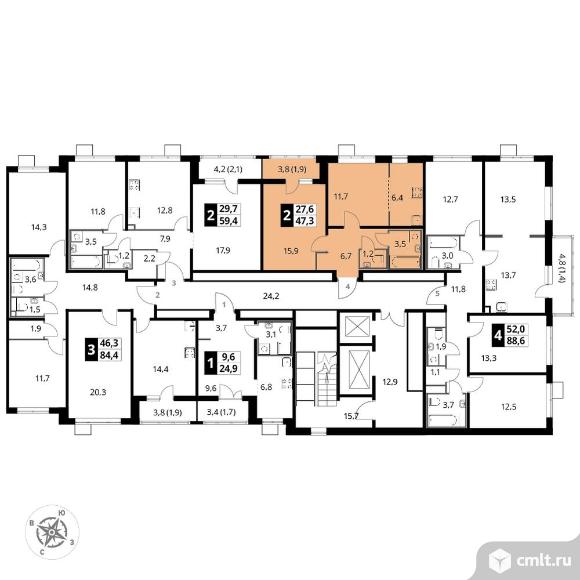 Перейти к актуальным объявлениям рубрики Квартиры. 2-комнатная квартира 47,4 кв.м - ЖК «1-й Лермонтовский»