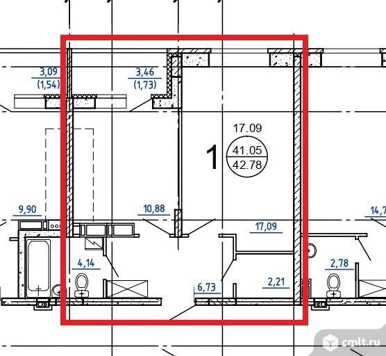 1-комнатная квартира 42,78 кв.м