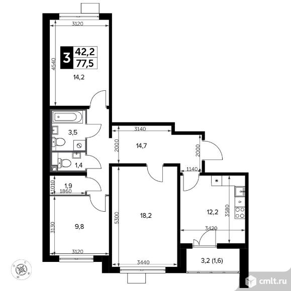 Перейти к актуальным объявлениям рубрики Квартиры. 3-комнатная квартира 77,7 кв.м - Южная Битца