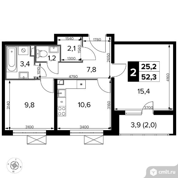 Перейти к актуальным объявлениям рубрики Квартиры. 2-комнатная квартира 52,4 кв.м - Южная Битца