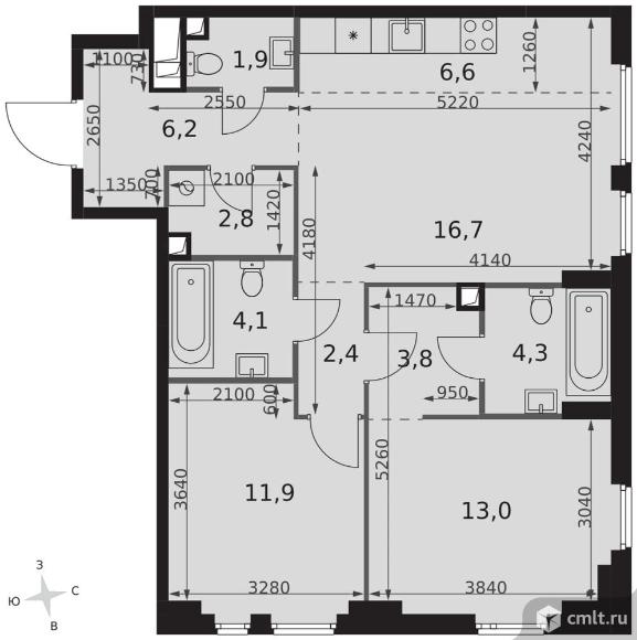 Перейти к актуальным объявлениям рубрики Квартиры. 3-комнатная квартира 73,7 кв.м - ЖК "Sydney City"