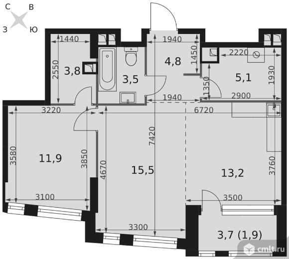 Перейти к актуальным объявлениям рубрики Квартиры. 2-комнатная квартира 59,7 кв.м - ЖК "Роттердам"