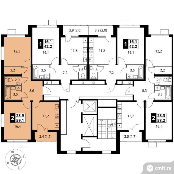 Перейти к актуальным объявлениям рубрики Квартиры. 2-комнатная квартира 59,1 кв.м - ЖК "1-й Южный"