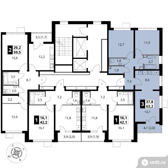 Перейти к актуальным объявлениям рубрики Квартиры. 3-комнатная квартира 63,1 кв.м - ЖК "1-й Южный"