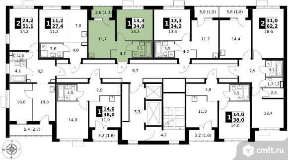 1-комнатная квартира 34 кв.м - ЖК "1-й Саларьевский"