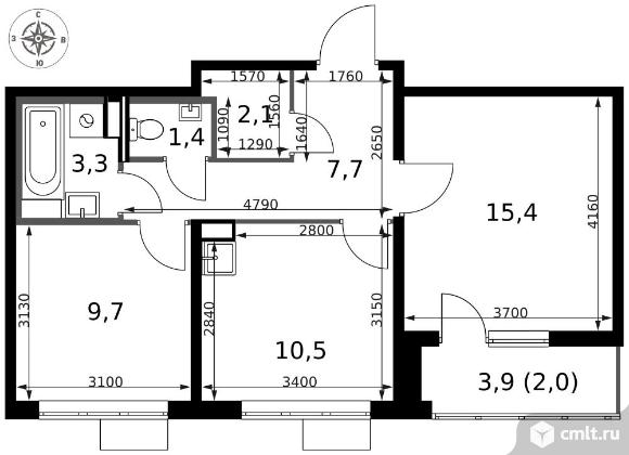 2-комнатная квартира 52,1 кв.м - ЖК "1-й Саларьевский"