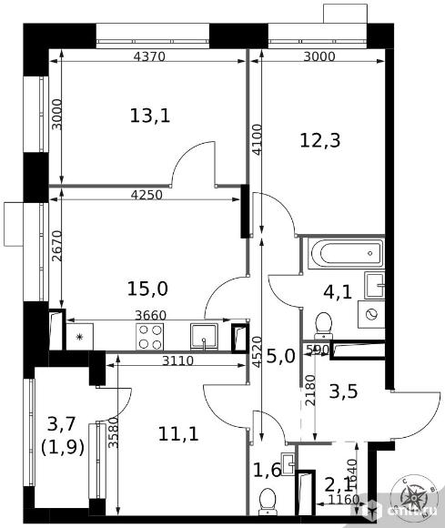 Перейти к актуальным объявлениям рубрики Квартиры. 3-комнатная квартира 69,7 кв.м - ЖК "1-й Саларьевский"