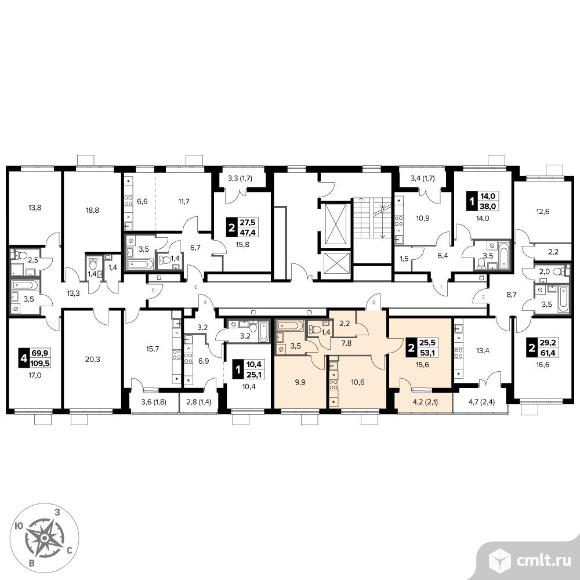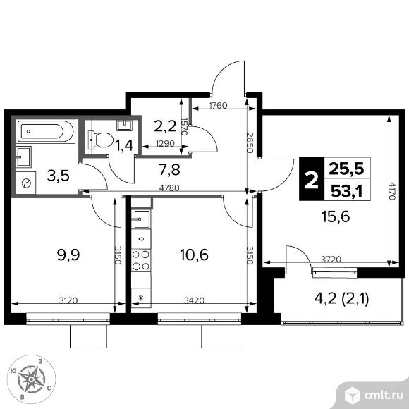 Перейти к актуальным объявлениям рубрики Квартиры. 2-комнатная квартира 53,1 кв.м - ЖК "1-й Донской"