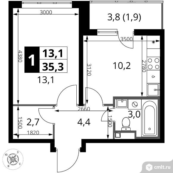 Перейти к актуальным объявлениям рубрики Квартиры. 1-комнатная квартира 35,3 кв.м - ЖК "1-й Донской"