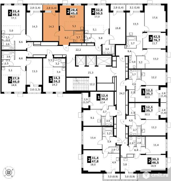 Перейти к актуальным объявлениям рубрики Квартиры. 2-комнатная квартира 45 кв.м - ЖК "1-й Донской"